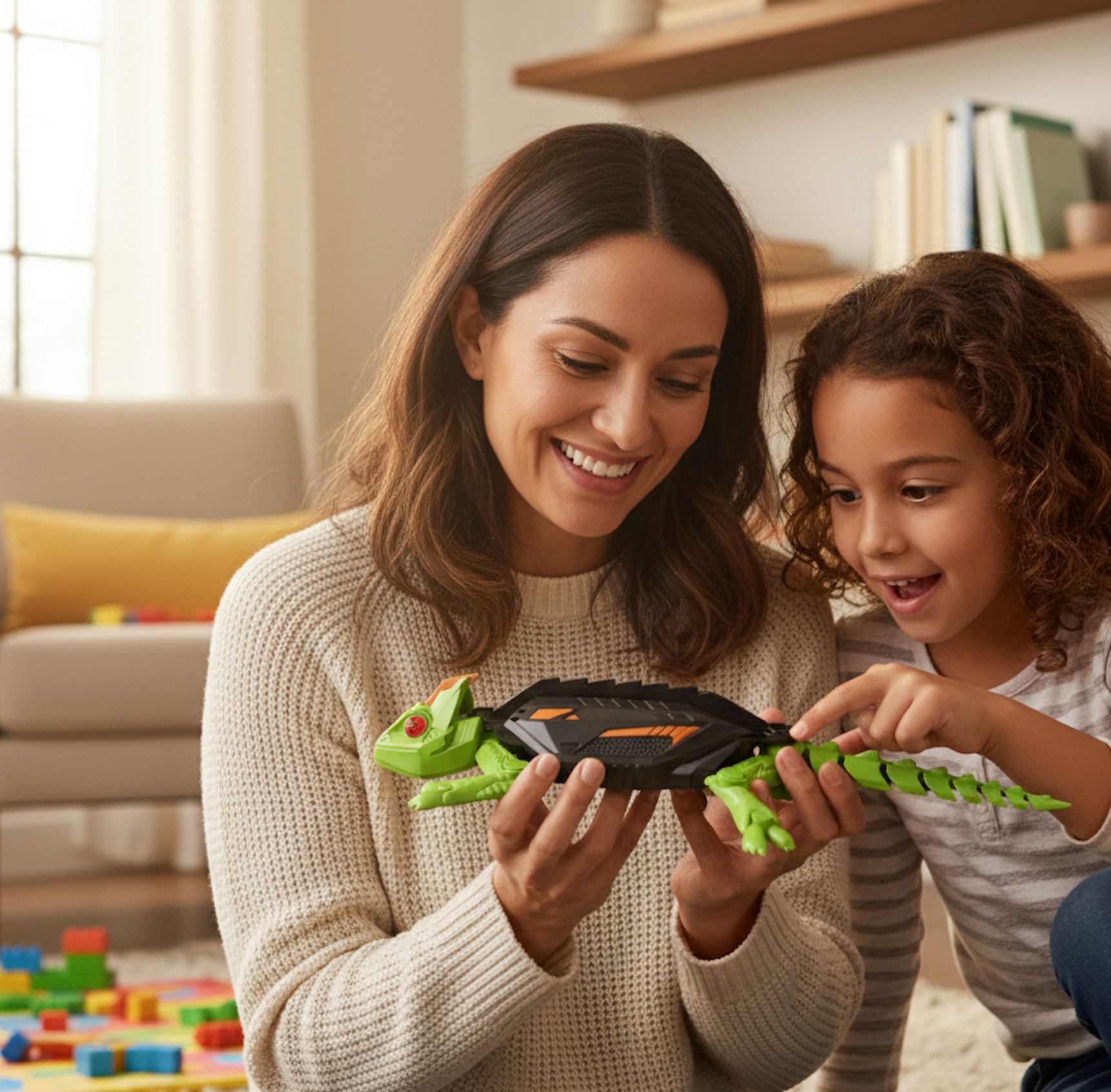 Designed for excitement and built for safety, it moves smoothly across walls, windows, and floors — turning any space into a playground for kids and families. Each creature, from the daring Gecko to the fearless Cockroach, brings lifelike motion and endless entertainment.
